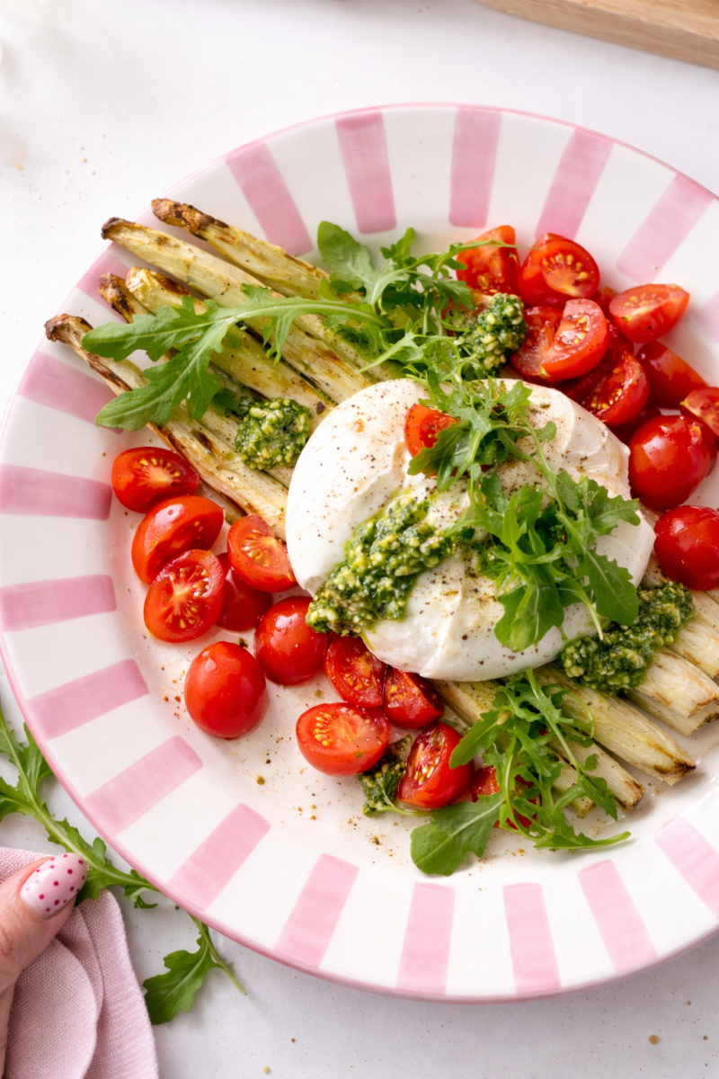 Asperges met burrata en pesto