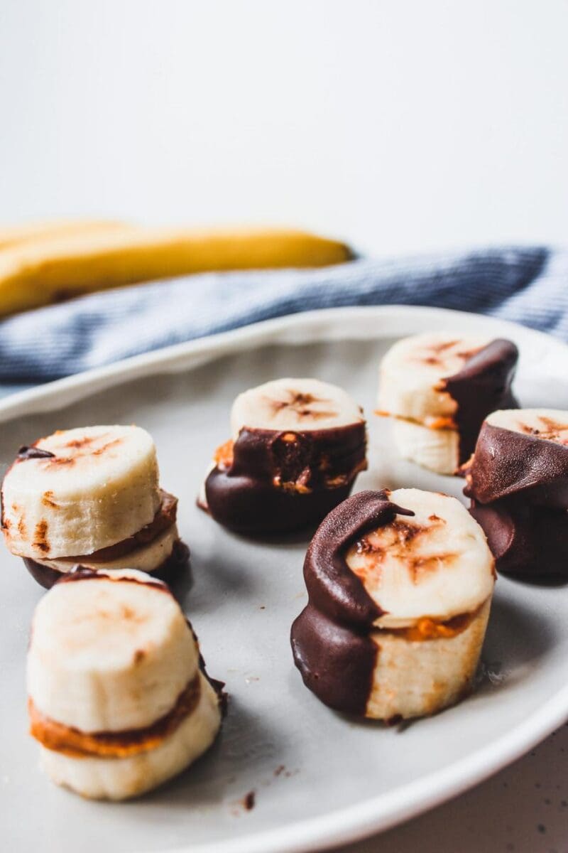 ResetHeerlijke snack voor bij warm weer! Haal ze 5 min voor snacken uit de vriezer, anders zijn ze wel heel hard. Tip: ook leuk te variëren met topping bovenop de chocolade, bv kokosschaafsel. Succes!!
